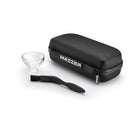 Stainless steel and anodized aluminium body, stainless steel burrs and axle, carbon fibre lever, anodised aluminium knob, tank, neodymium magnets, silicone grip