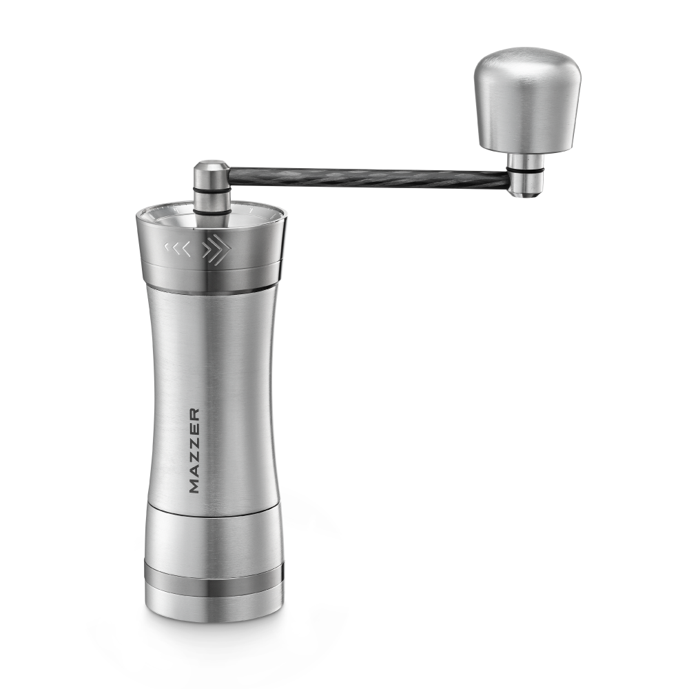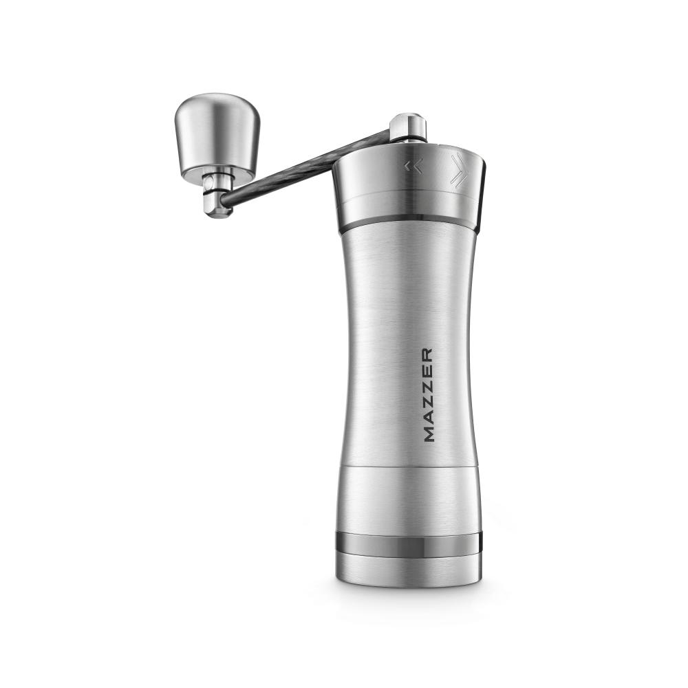 Omega is a stainless steel coffee grinder with anodized aluminum and carbon fiber components to optimize mechanical performance.