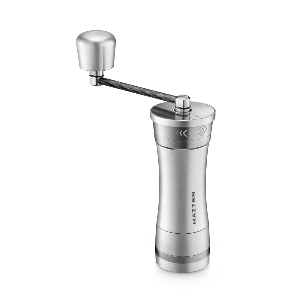 The Omega lid is crafted from stainless steel and anodized aluminum, designed specifically to prevent bean spillage during grinding, regardless of the hand grinder's position.